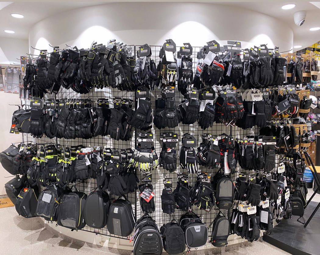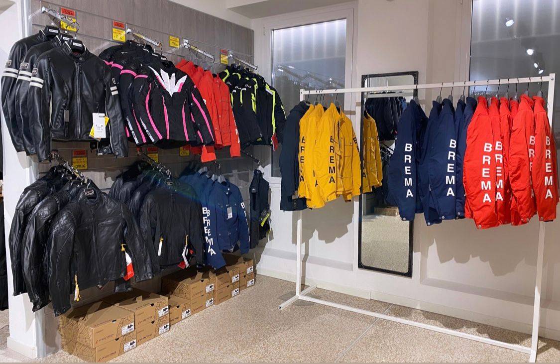 La gamma abbigliamento invece: ALPINESTARS, BREMA, DAINESE, DMD, ELEVEIT, GIVI, IXS, JOHN DOE, MOTTO JEANS JOLLISPORT, OJ ATMOSFERE, SCORPION, SPIDI, TUCANO.