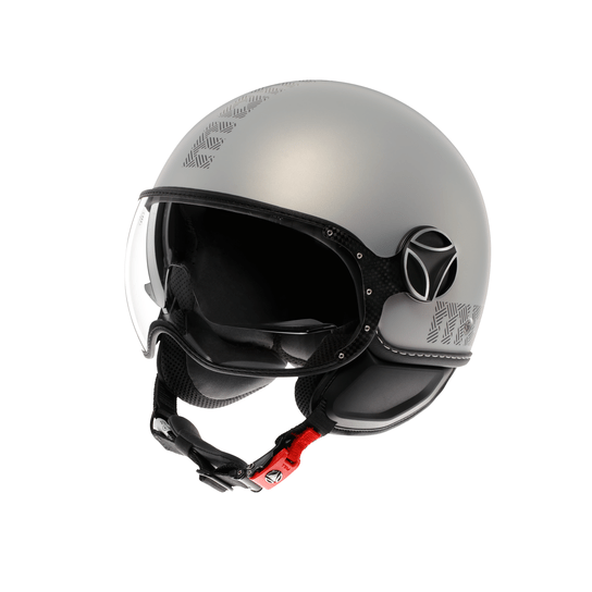 Il Momodesign FGTR Evo Hip Matt Grey/Cerulean Grey è un casco jet che rappresenta un'icona dello stile italiano, perfetto per chi cerca un equilibrio tra sicurezza e design. Questo modello, caratterizzato dalla sua colorazione grigio opaco e celeste, unisce un look vintage a caratteristiche tecniche all'avanguardia.