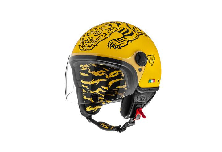 Iuter Yellow Black Tiger Casco Demi-jet con Visiera Helmo Milano