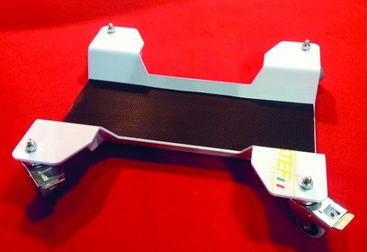 Pedana girevole completa di ruote frenanti da applicare a moto e scooter con cavalletto centrale. Permette di spostare la moto/scooter agevolmente sul cavalletto centrale.