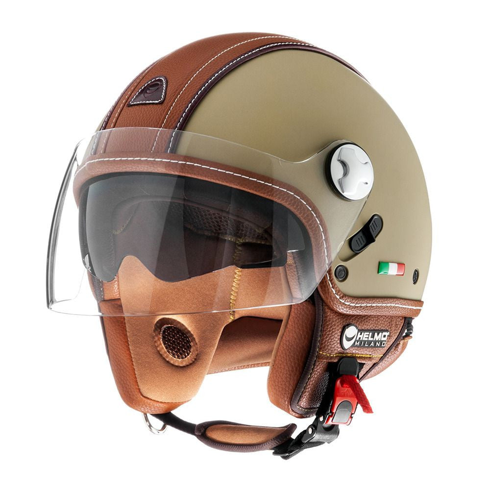 Pelledura Premium Mat Green Casco Jet Helmo Milano
